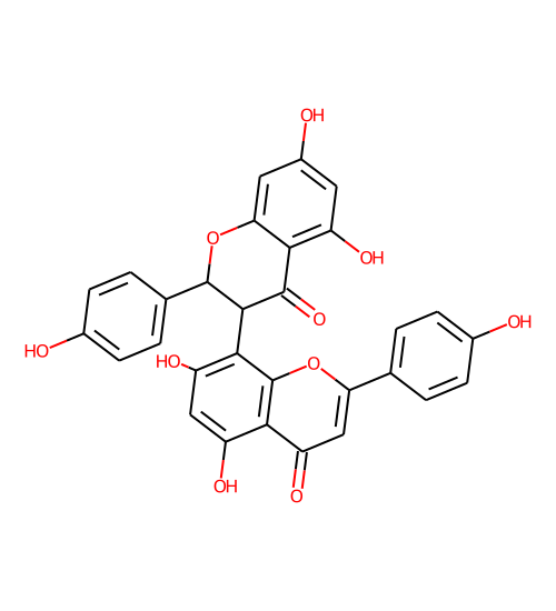 | Smiles | O=C1c2c(O)cc(O)cc2OC(c2ccc(O)cc2)C1c1c(O)cc(O)c2c(=O)cc(-c3ccc(O)cc3)oc12 |