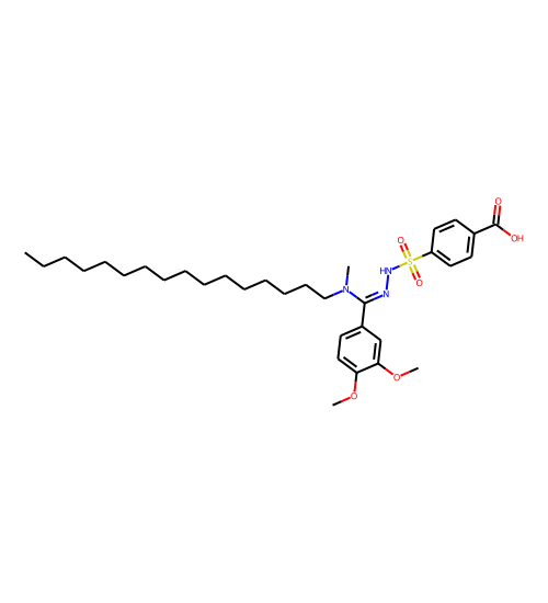 | Smiles | CCCCCCCCCCCCCCCCN(C)C(=NNS(=O)(=O)c1ccc(C(=O)O)cc1)c1ccc(OC)c(OC)c1 |
