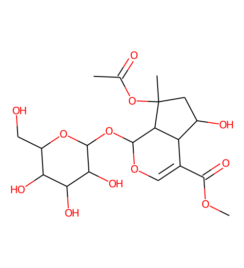 | Smiles | COC(=O)C1=COC(OC2OC(CO)C(O)C(O)C2O)C2C1C(O)CC2(C)OC(C)=O |