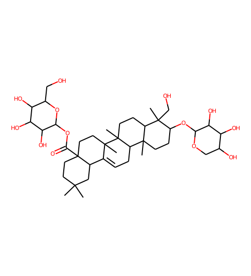 | Smiles | CC1(C)CCC2(C(=O)OC3OC(CO)C(O)C(O)C3O)CCC3(C)C(=CCC4C5(C)CCC(OC6OCC(O)C(O)C6O)C(C)(CO)C5CCC43C)C2C1 |