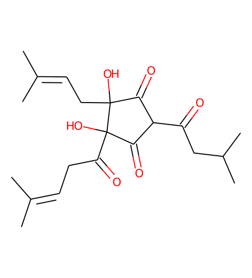 | Smiles | CC(C)=CCC(=O)C1(O)C(=O)C(C(=O)CC(C)C)C(=O)C1(O)CC=C(C)C |