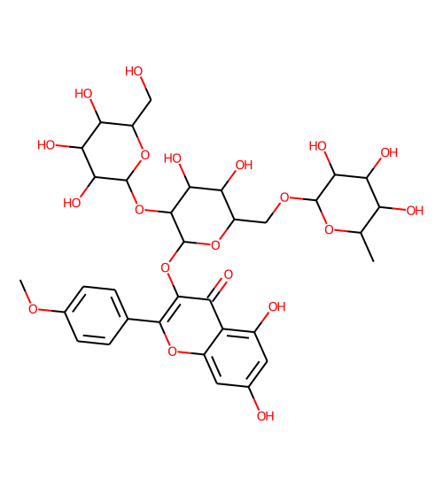 | IUPAC | 3-[(2S,3R,4S,5S,6R)-4,5-dihydroxy-3-[(2S,3R,4S,5S,6R)-3,4,5-trihydroxy-6-(hydroxymethyl)oxan-2-yl]oxy-6-[[(2R,3R,4R,5R,6S)-3,4,5-trihydroxy-6-methyloxan-2-yl]oxymethyl]oxan-2-yl]oxy-5,7-dihydroxy-2-(4-methoxyphenyl)chromen-4-one |