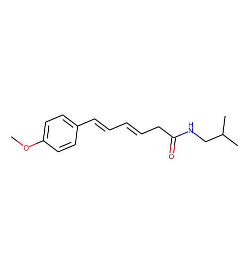 | Smiles | COc1ccc(C=CC=CCC(=O)NCC(C)C)cc1 |