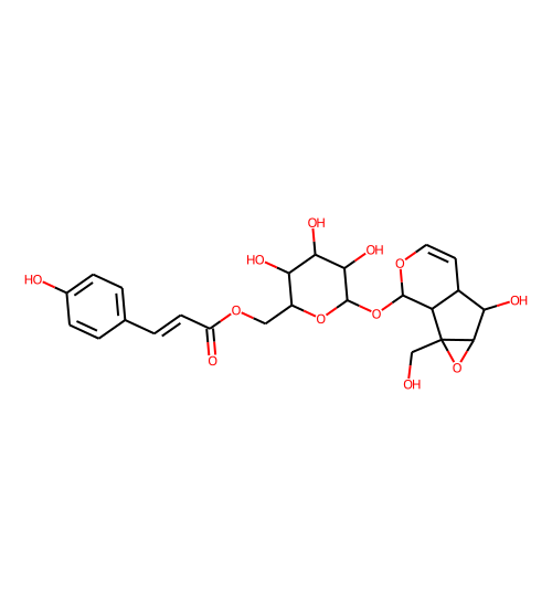 | Smiles | O=C(C=Cc1ccc(O)cc1)OCC1OC(OC2OC=CC3C(O)C4OC4(CO)C23)C(O)C(O)C1O |