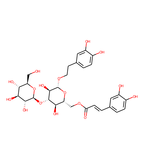 | Smiles | O=C(C=Cc1ccc(O)c(O)c1)OC[C@H]1O[C@@H](OCCc2ccc(O)c(O)c2)[C@H](O)[C@@H](O[C@@H]2O[C@H](CO)[C@@H](O)[C@H](O)[C@H]2O)[C@@H]1O |