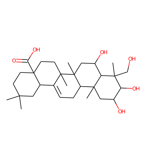 | Smiles | CC1(C)CCC2(C(=O)O)CCC3(C)C(=CCC4C5(C)CC(O)C(O)C(C)(CO)C5C(O)CC43C)C2C1 |